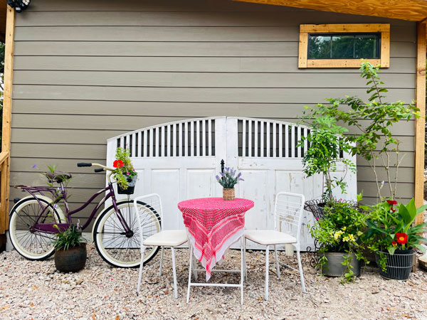 | Cottage # 1 Adaline | Fredericksburg, Texas 78624 | 2 Guests | No Smoking | French doors open to your private covered porch where you can sip on your favorite cocktail, dive into a compelling read, or just cozy up and relax. Cottages reflect an open concept which includes a private washroom. Each cottage has its own unique décor to create a warm comfortable space for your stay. Relax in your queen size bed with silky soft white bedding. Mattresses are fully encased with a five-sided mattress protector. An electric fireplace is there for you to enjoy on those crisp nights along with soft throw blankets. Your washroom includes a shower large enough for two, fluffy cotton bath towels, plant-based shampoo, conditioner, and body wash free of parabens and thoughtfully stocked toiletry items. Your kitchenette comes with a small retro refrigerator/freezer, a 2 burner electric cooktop, electric skillet, microwave, toaster, coffee maker, electric tea kettle, salt, pepper, spices, dishes, glassware, utensils, coffee, tea, eggs, butter, and jelly. For the grill master in you, you have your own personal grill with a side burner, utensils and pans. A flat screen TV accompanies a DVD player with an array of movies to choose from. Books, games and playing cards are also available. Cell phone coverage booster enables access to the internet through your cell phone carrier. A communal fire pit is on premises to sit back, enjoy a fire on a cold evening, roast marshmallows and watch the shimmering stars. |