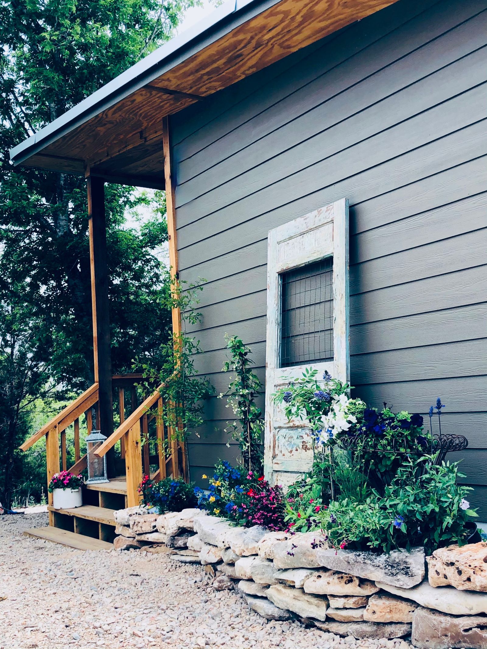 | Cottage # 2 Bucky | Fredericksburg, Texas 78624 | 2 Guests | No Smoking | French doors open to your private covered porch where you can sip on your favorite cocktail, dive into a compelling read, or just cozy up and relax. Cottages reflect an open concept which includes a private washroom. Each cottage has its own unique décor to create a warm comfortable space for your stay. Relax in your queen size bed with silky soft white bedding. Mattresses are fully encased with a five-sided mattress protector. An electric fireplace is there for you to enjoy on those crisp nights along with soft throw blankets. Your washroom includes a shower large enough for two, fluffy cotton bath towels, plant-based shampoo, conditioner, and body wash free of parabens and thoughtfully stocked toiletry items. Your kitchenette comes with a small retro refrigerator/freezer, a 2 burner electric cooktop, electric skillet, microwave, toaster, coffee maker, electric tea kettle, salt, pepper, spices, dishes, glassware, utensils, coffee, tea, eggs, butter, and jelly. For the grill master in you, you have your own personal grill with a side burner, utensils and pans. A flat screen TV accompanies a DVD player with an array of movies to choose from. Books, games and playing cards are also available. Cell phone coverage booster enables access to the internet through your cell phone carrier. A communal fire pit is on premises to sit back, enjoy a fire on a cold evening, roast marshmallows and watch the shimmering stars. Maximum # of pets: 1 We ask, if you do bring your fur baby, that they are not permitted on furniture or bed. Fur babies must not be left alone in the cottage. |